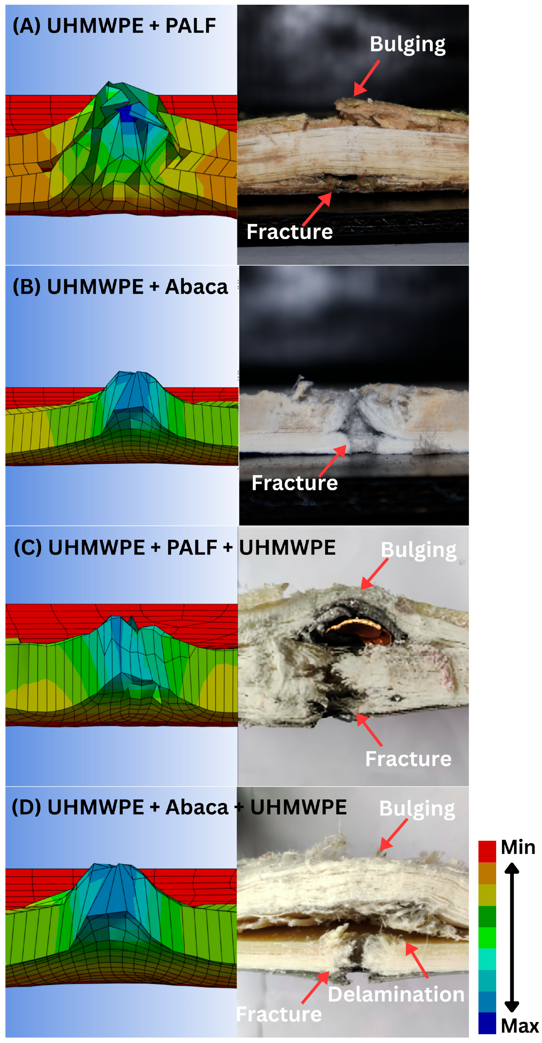 Chicago/Turabian StyleMagdaluyo, Eduardo, Jr., Ariel Jorge Payot, Lorenzo Matilac, and Denisse Jonel Pavia. 2026. "Ballistic Failure Analysis of Hybrid Natural Fiber/UHMWPE-Reinforced Composite Plates Using Experimental and Finite Element Methods" Journal of Manufacturing and Materials Processing 10, no. 1: 33. https://doi.org/10.3390/jmmp10010033