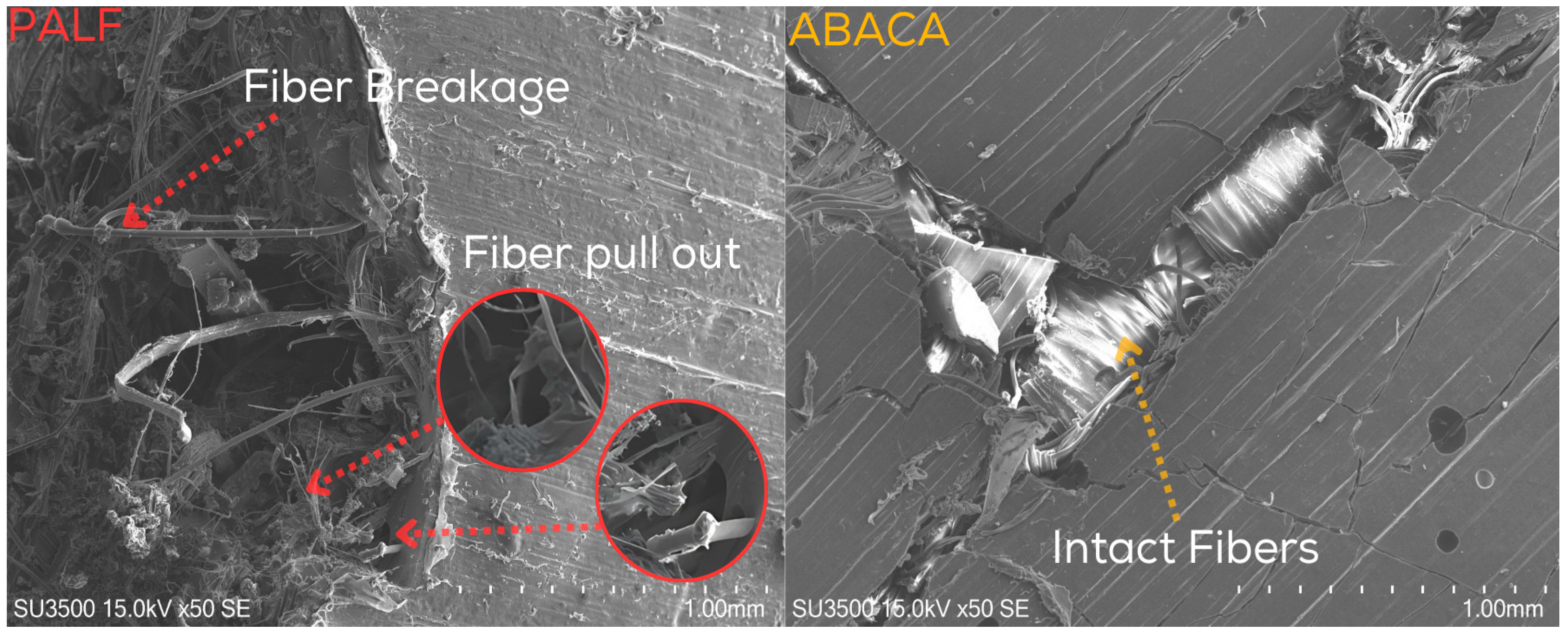 | B | UHMWPE + ABACA | 14.58 | 38.15 | 7.33 ± 0.25 | 23.13 ± 1.45 | 49.72 | 39.37 |