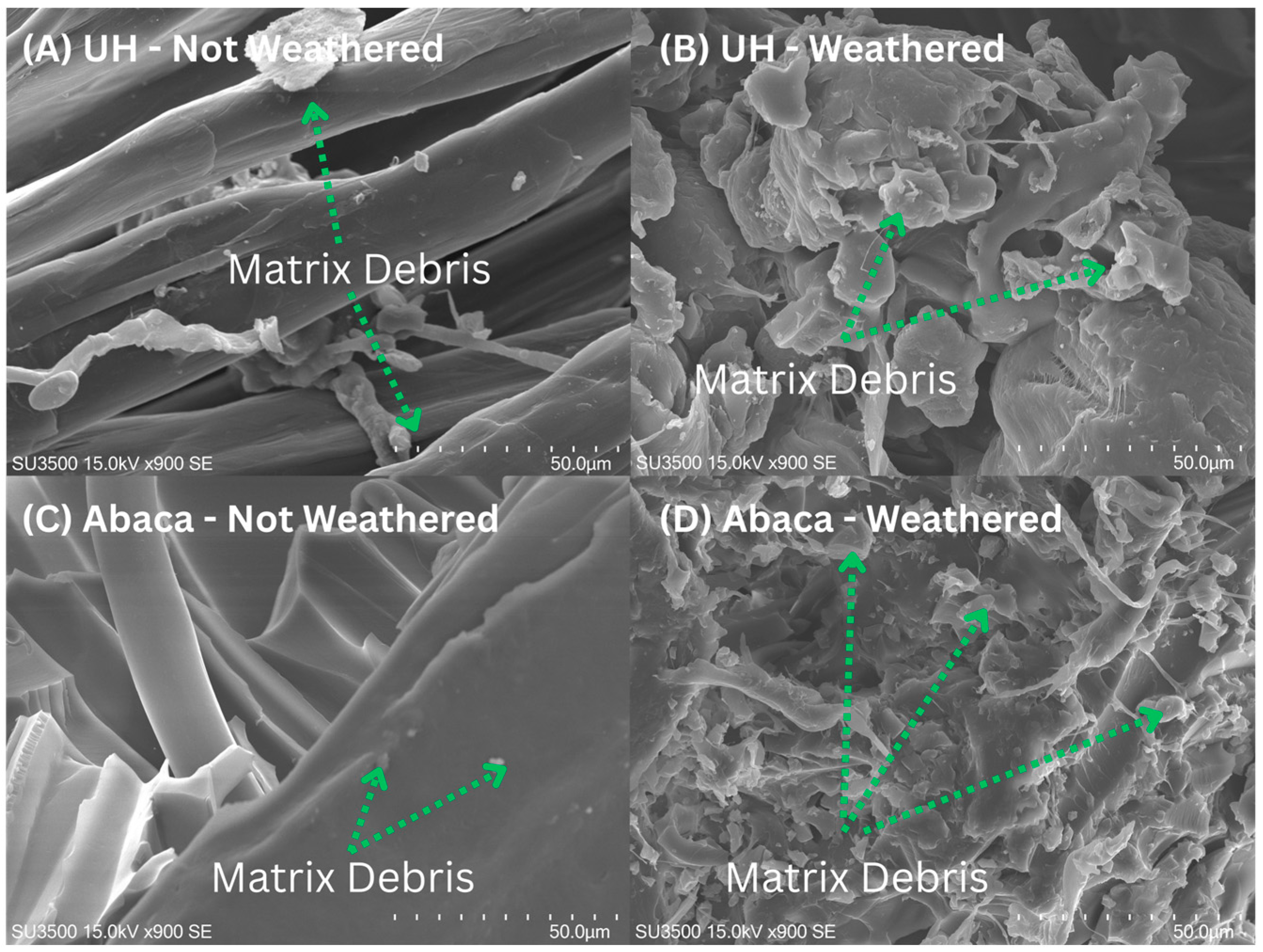 - Das, S.C.; La Rosa, A.D.; Goutianos, S.; Grammatikos, S. Effect of Accelerated Weathering on the Performance of Natural Fibre Reinforced Recyclable Polymer Composites and Comparison with Conventional Composites. Compos. Part C Open Access 2023, 12, 100378. [Google Scholar] [CrossRef]