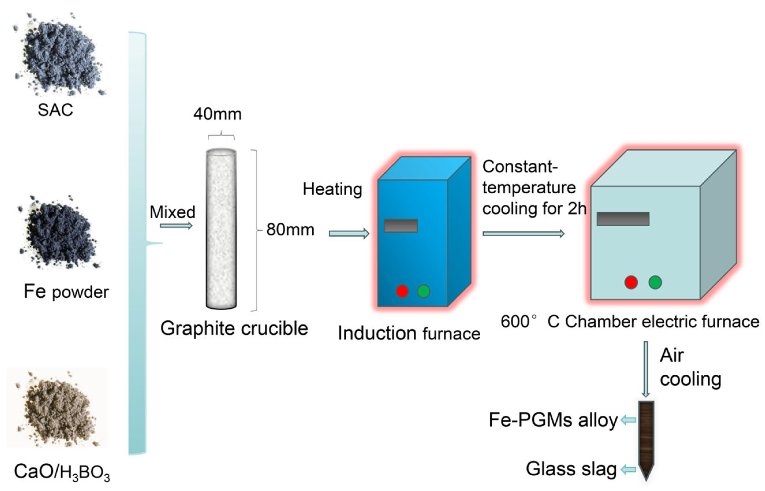 - Zheng, H.; Ding, Y.; Wen, Q.; Zhao, S.; He, X.; Zhang, S.; Dong, C. Slag Design and Iron Capture Mechanism for Recovering Low-Grade Pt, Pd, and Rh from Leaching Residue of Spent Auto-Exhaust Catalysts. Sci. Total Environ. 2022, 802, 149830. [Google Scholar] [CrossRef]