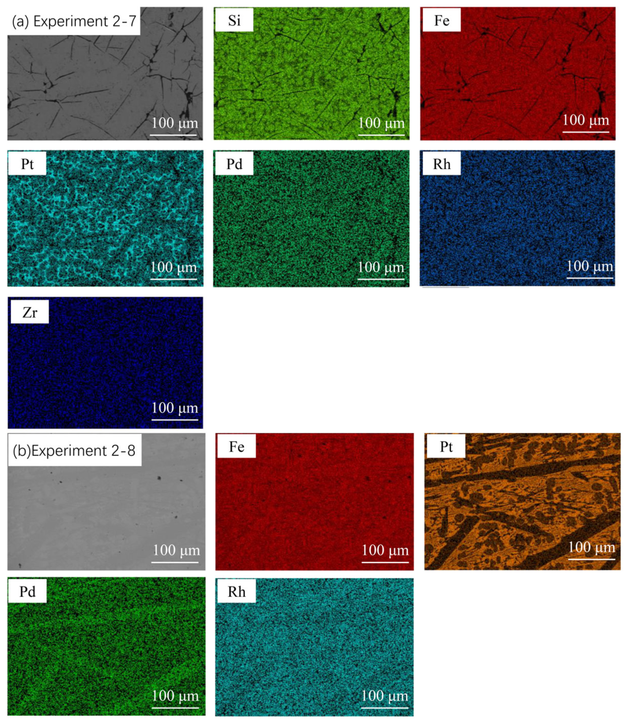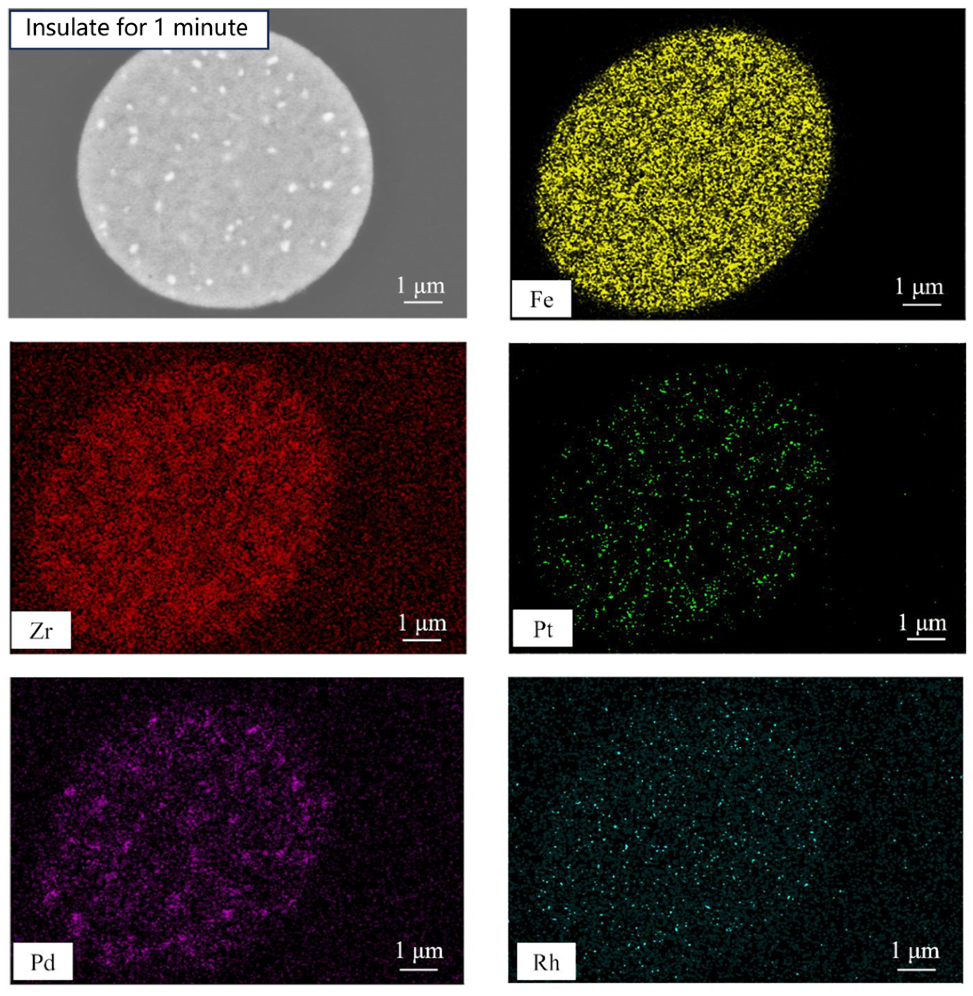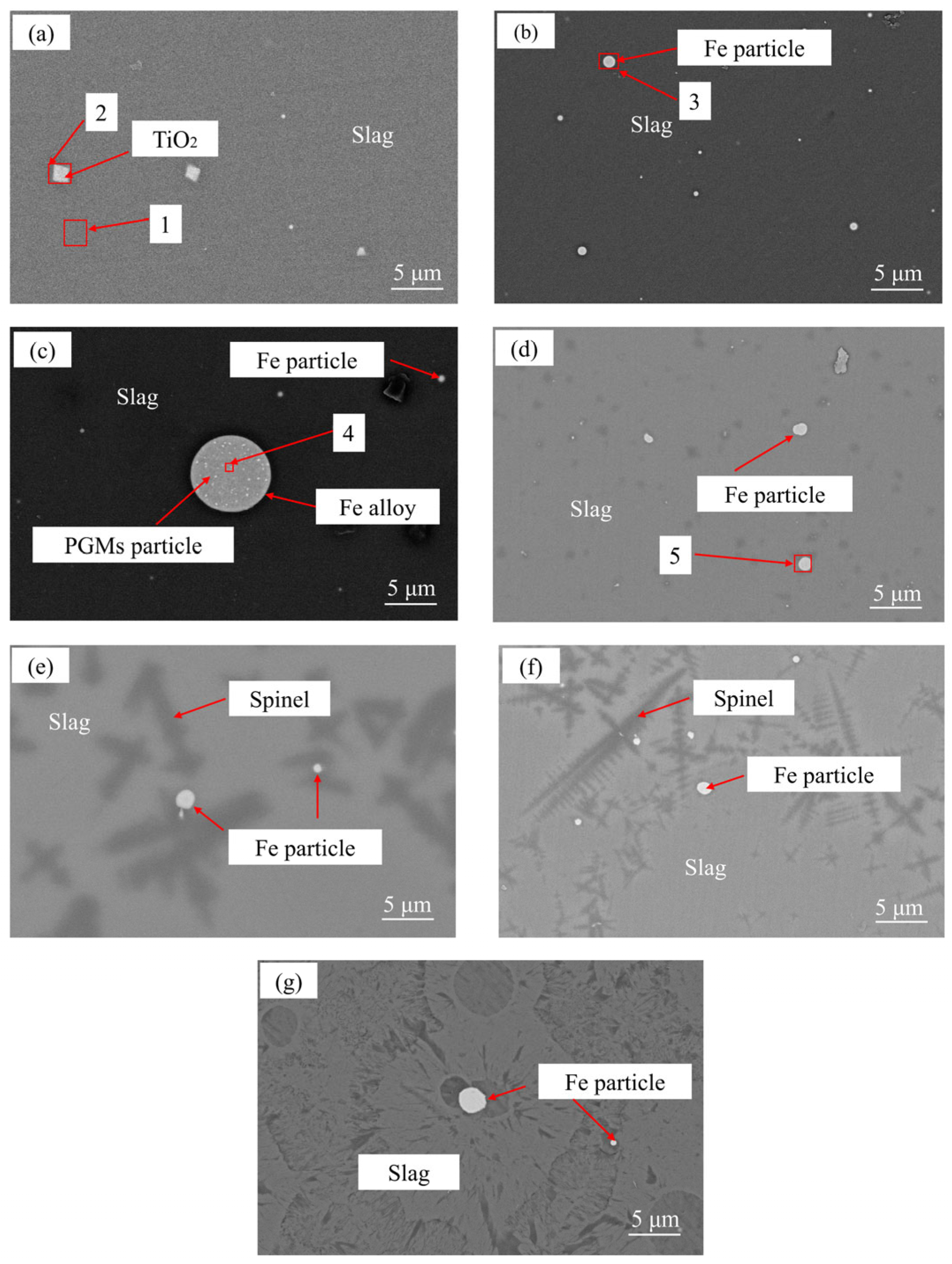- Without iron-based collectors, PGMs remain nanoscale-dispersed in the slag phase and cannot spontaneously aggregate and settle, confirming that adding metal collectors is essential for efficient recovery.