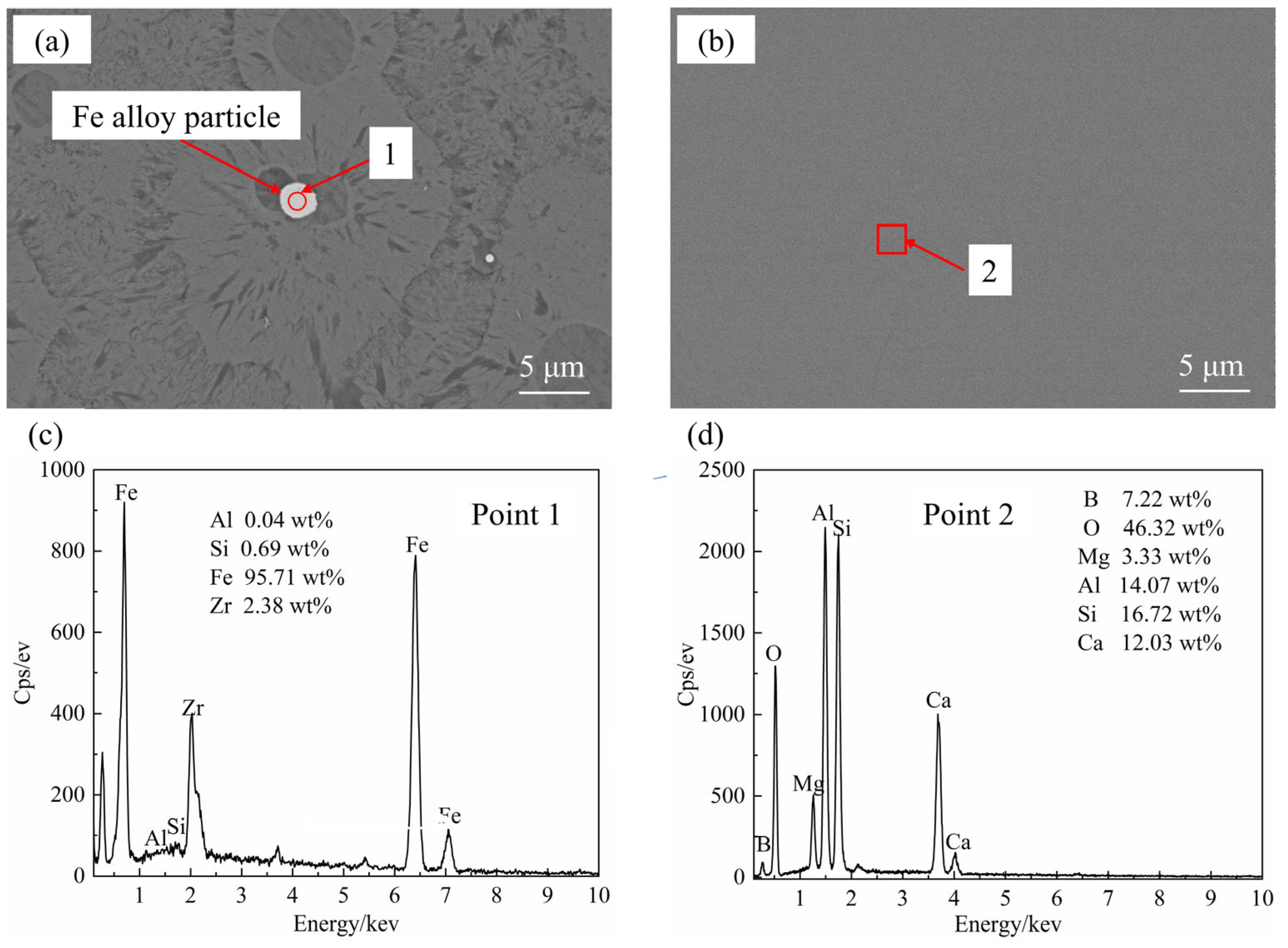- The composite flux (CaO/H3BO3) facilitates multidimensional optimization by markedly decreasing slag viscosity and enhancing the density difference between slag and metal, thereby promoting droplet settling in accordance with Stokes’ law. Additionally, it lowers the effective capture temperature to 1500 °C to inhibit FeSi formation, assists in slag vitrification to minimize PGM inclusions, and results in a pure α-Fe-based solid solution alloy suitable for subsequent processing.