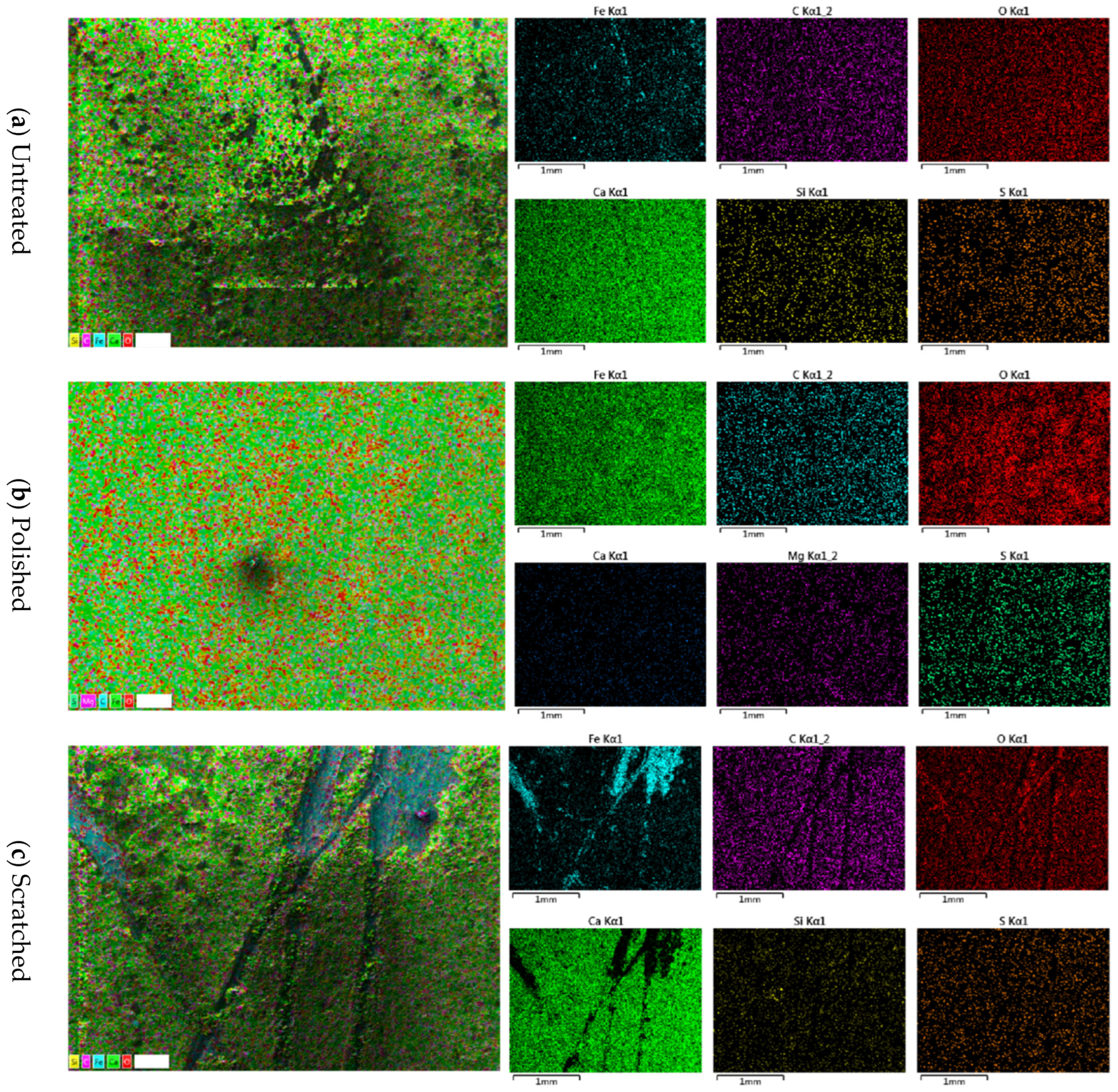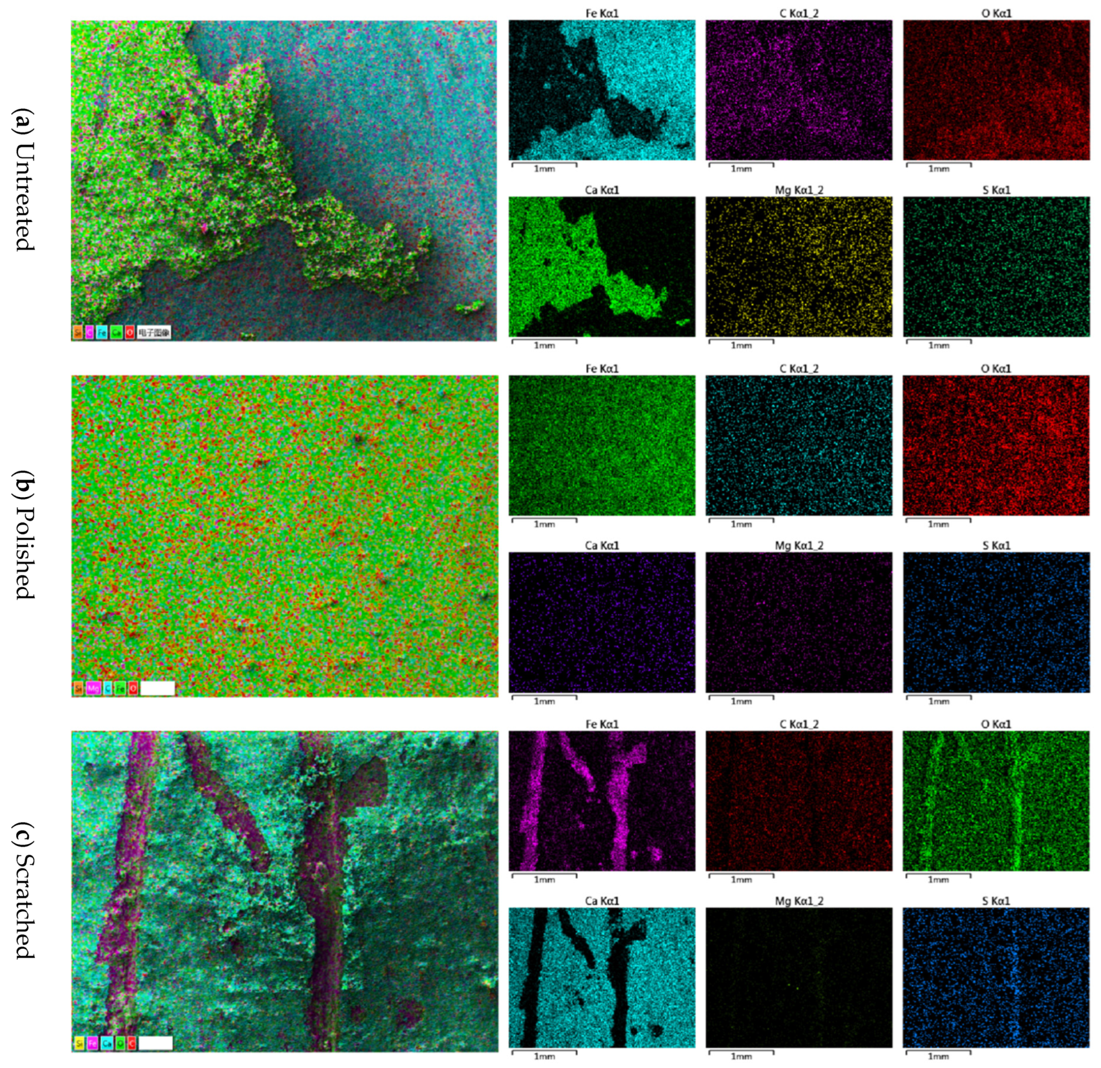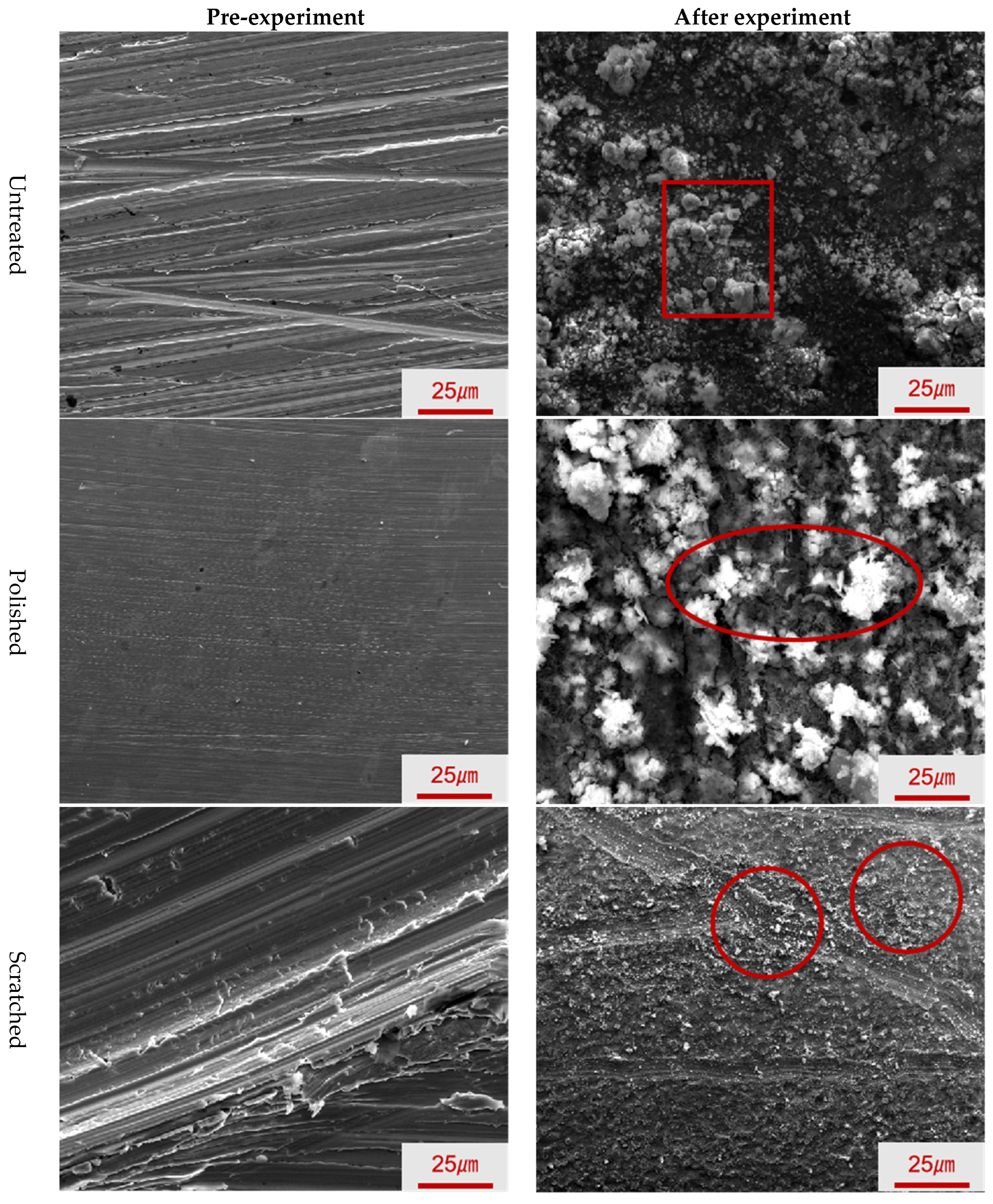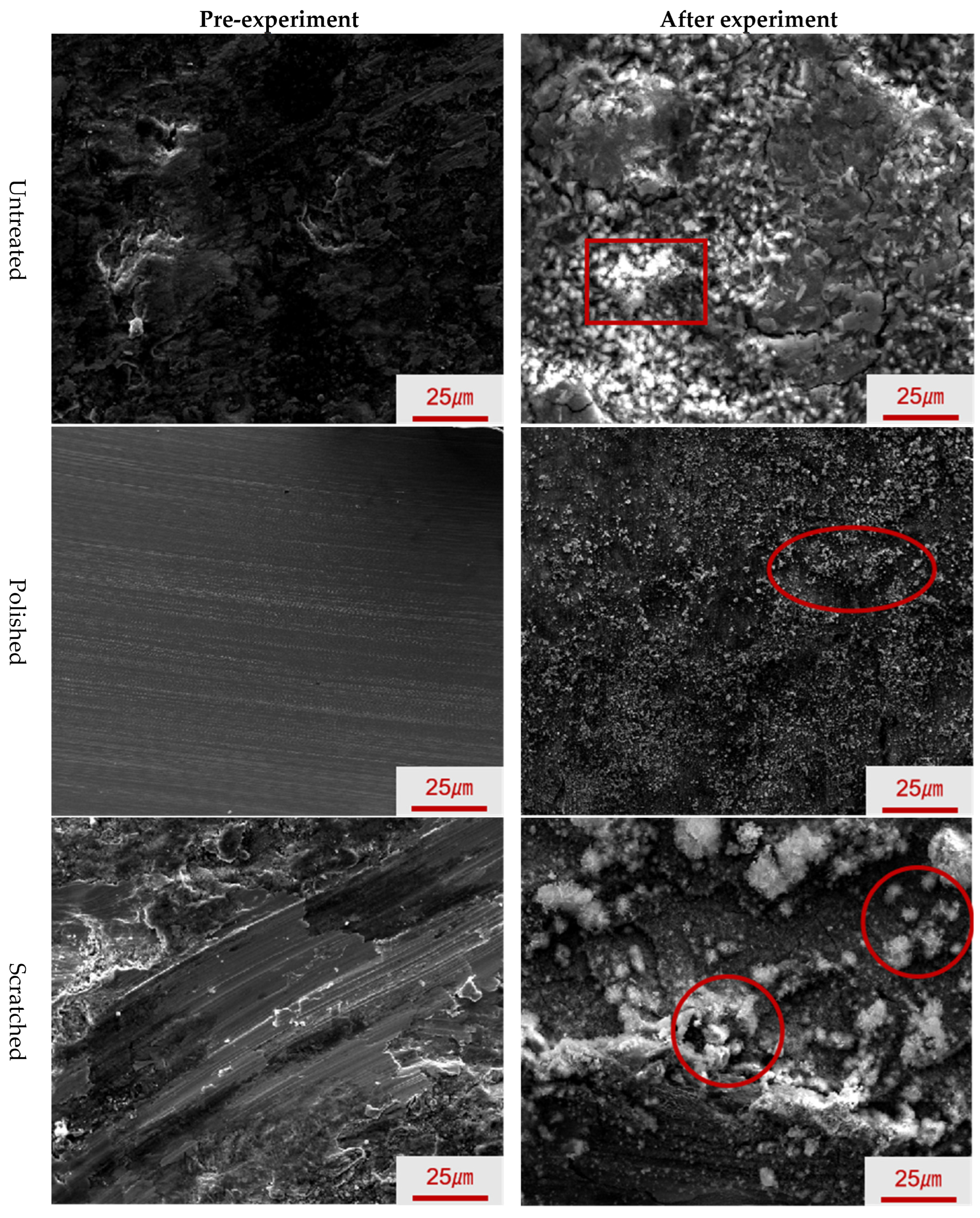 | Untreated | Polishing | Scratched | Untreated | Polishing | Scratched | |