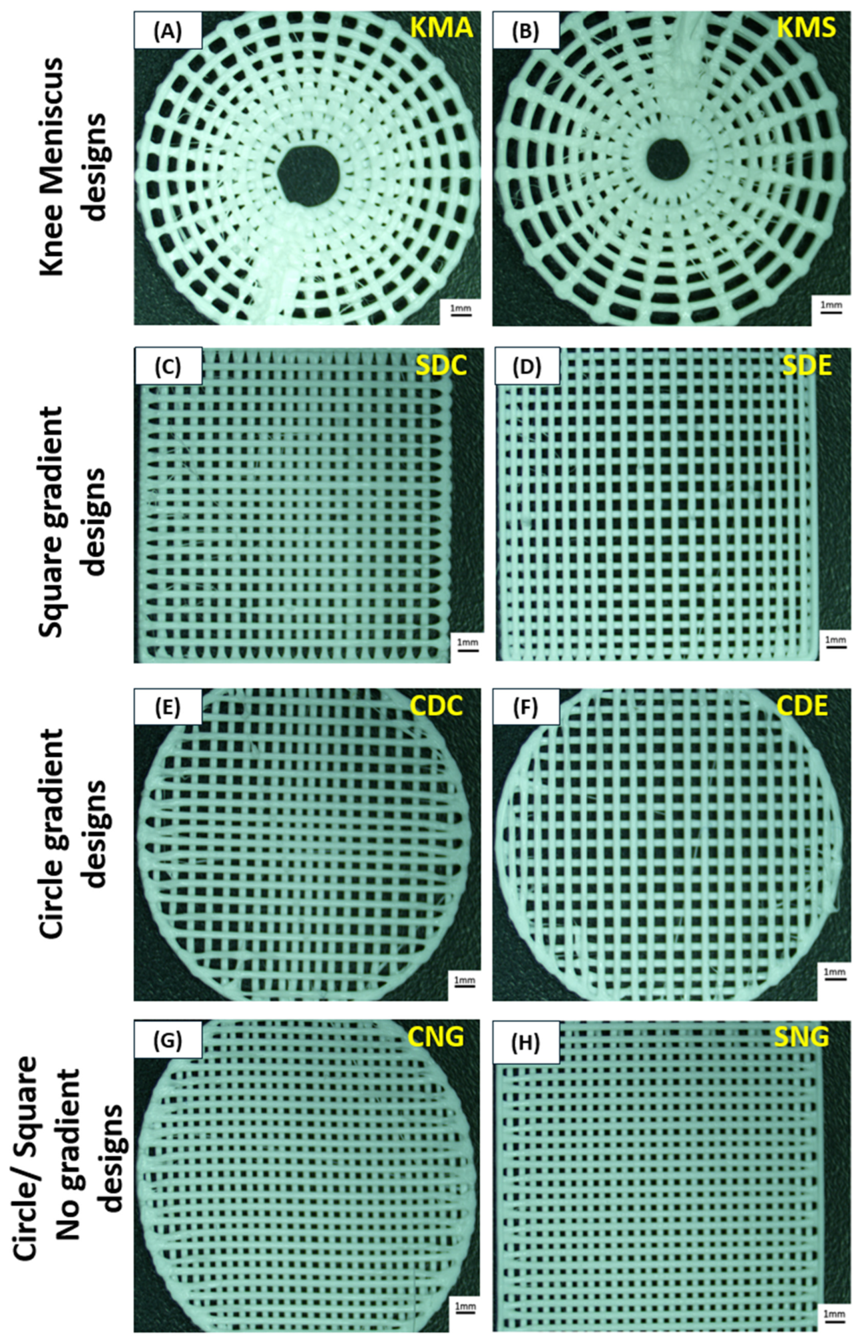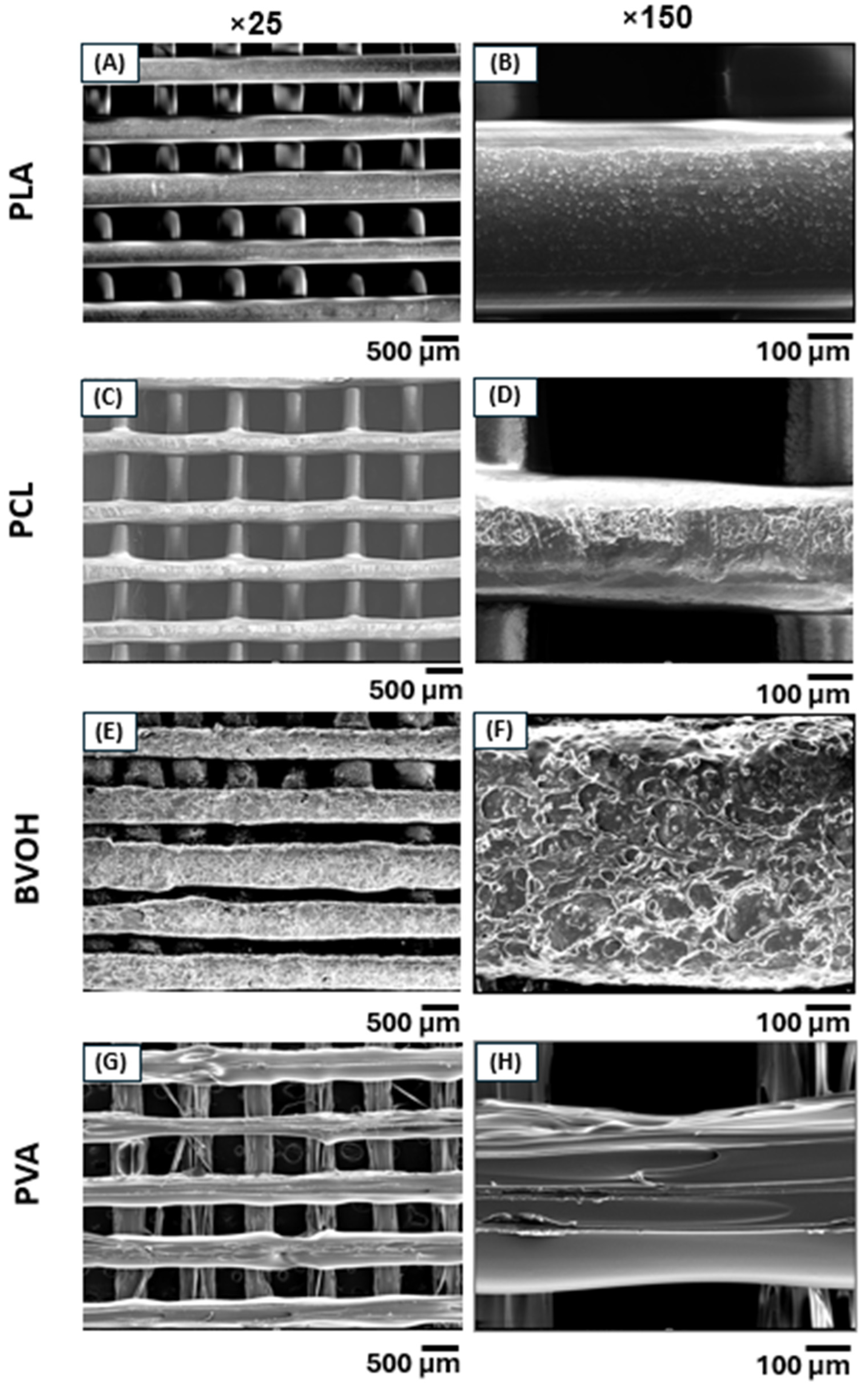 - Paetzold, R.; Coulter, F.B.; Singh, G.; Kelly, D.J.; O’Cearbhaill, E.D. Fused filament fabrication of polycaprolactone bioscaffolds: Influence of fabrication parameters and thermal environment on geometric fidelity and mechanical properties. Bioprinting 2022, 27, e00206. [Google Scholar] [CrossRef]