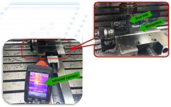 Milling is among the most important conventional machining operations. It is widely employed in industrial metal processing. Due to its use of multi-toothed tools, milling is by far more complex than turning or drilling. The engagement of multiple cutting edges and the variable chip cross-section during a tooth’s pass introduces significant complexity in the metal process. This leads to phenomena such as tool wear, surface roughness variation, and substantial heat generation in the cutting zone [1,2,3,4]. The cutting temperature serves as a critical indicator of process efficiency, tool life, and surface quality.