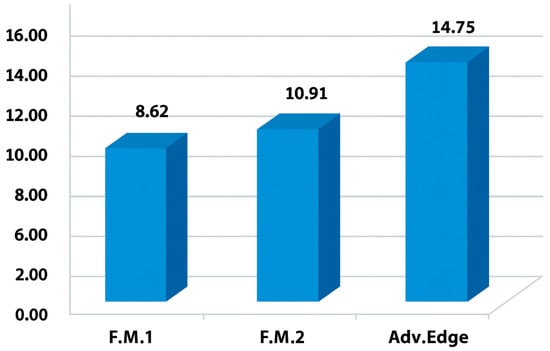Based on the analysis of the obtained results, it can be observed that in the experiment, the temperature increases by 10–20 °C when the cutting speed is raised from 1.05 to 1.31 m/s. The F.M.1 and F.M.2 and the simulation show a higher increase (21–23 °C) compared to the experiment. The observed increase in cutting temperature with cutting speed is consistent with trends reported in milling studies. Bergs and Liu [9] reported a comparable dependence of tool temperature on cutting speed when infrared thermography was applied in milling, with temperature levels of the same order of magnitude under dry cutting conditions. Similar trends have also been reported for milling of carbon steels [23], confirming that cutting speed remains one of the dominant factors governing thermal load in the cutting zone.