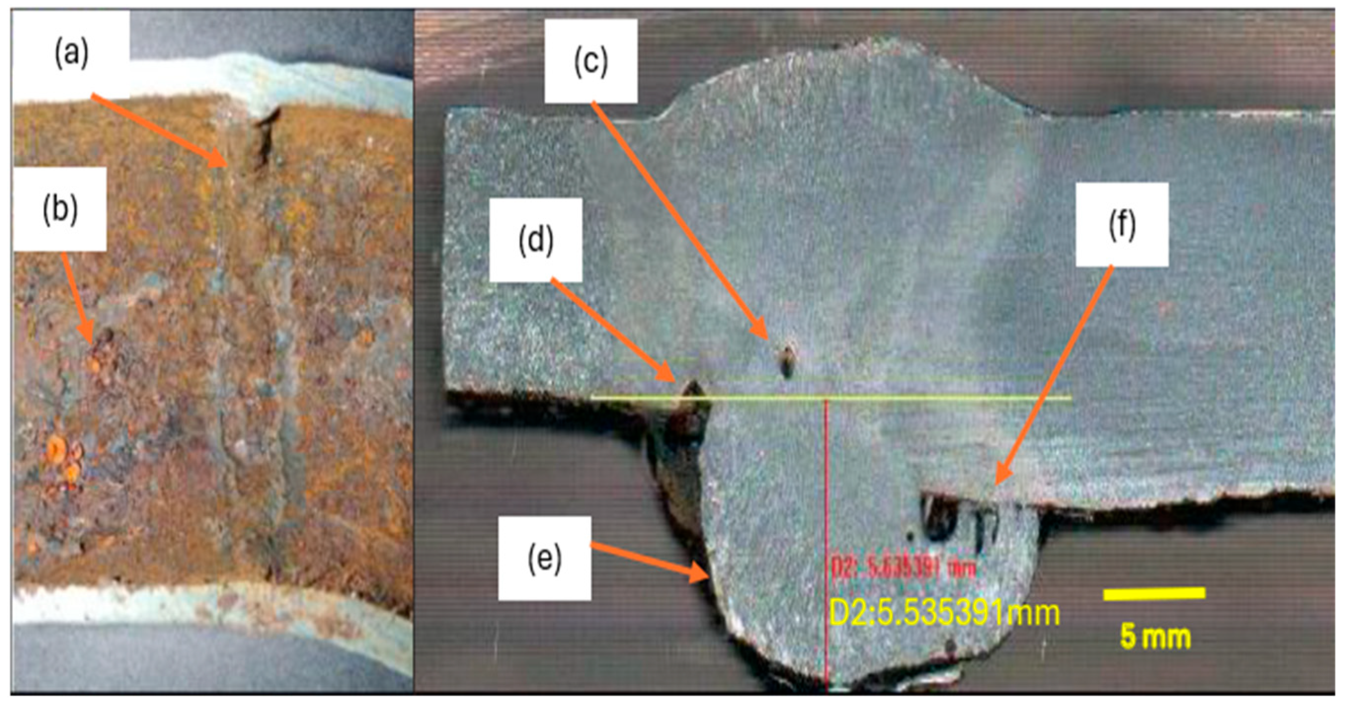- Tukahirwa, G.; Wandera, C. Influence of Process Parameters in Gas-Metal Arc Welding (GMAW) of Carbon Steels. In Weldin—Materials, Fabrication Processes, and Industry 5.0; Kumar, S., Ed.; IntechOpen: London, UK, 2023; pp. 1–23. [Google Scholar] [CrossRef]
