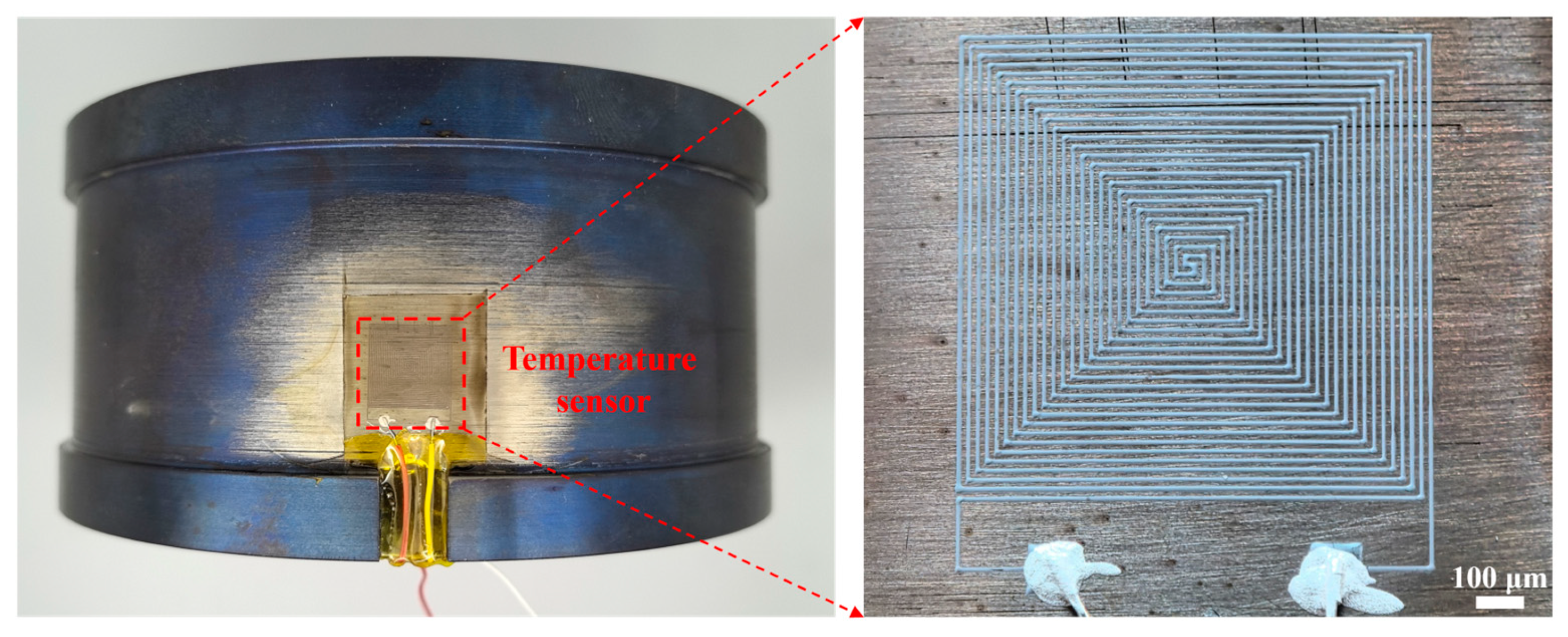 - Lai, W.; Zhao, C.; Wang, H.; Wu, Q.; Ye, D.; Huang, Y. Micro-Cylindrical Temperature Sensors Array via Conformal Electrohydrodynamic Printing. Sci. China Technol. Sci. 2025, 68, 1520301. [Google Scholar] [CrossRef]