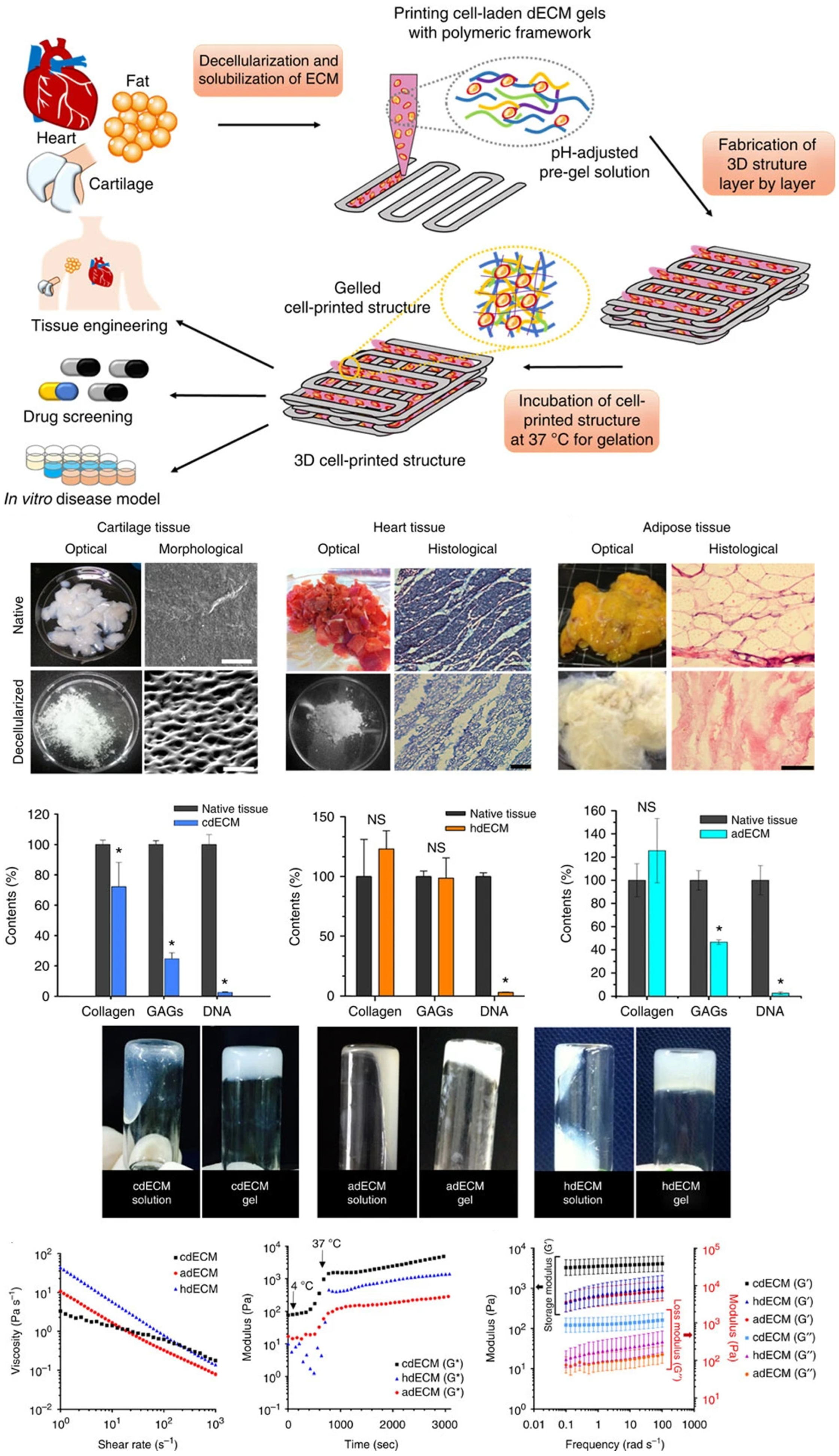 - Rathan, S.; Dejob, L.; Schipani, R.; Haffner, B.; Möbius, M.E.; Kelly, D.J. Fiber reinforced cartilage ECM functionalized bioinks for functional cartilage tissue engineering. Adv. Healthc. Mater. 2019, 8, 1801501. [Google Scholar] [CrossRef]