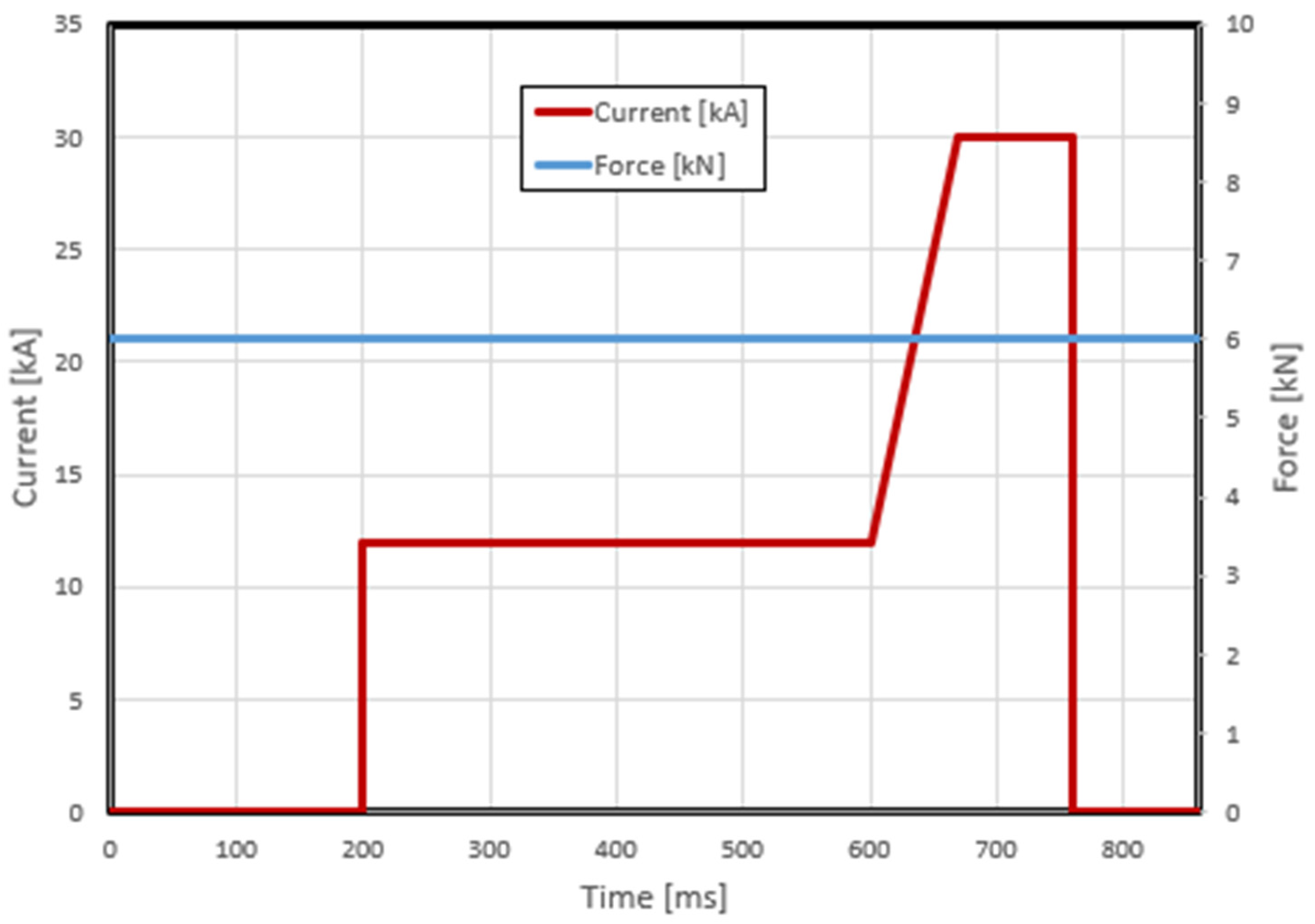 | Electrode force | Section 3.1 | 5/6/7/8 kN | Sheet thickness: 2 mm Adhesive: yes | 16 | 480 |