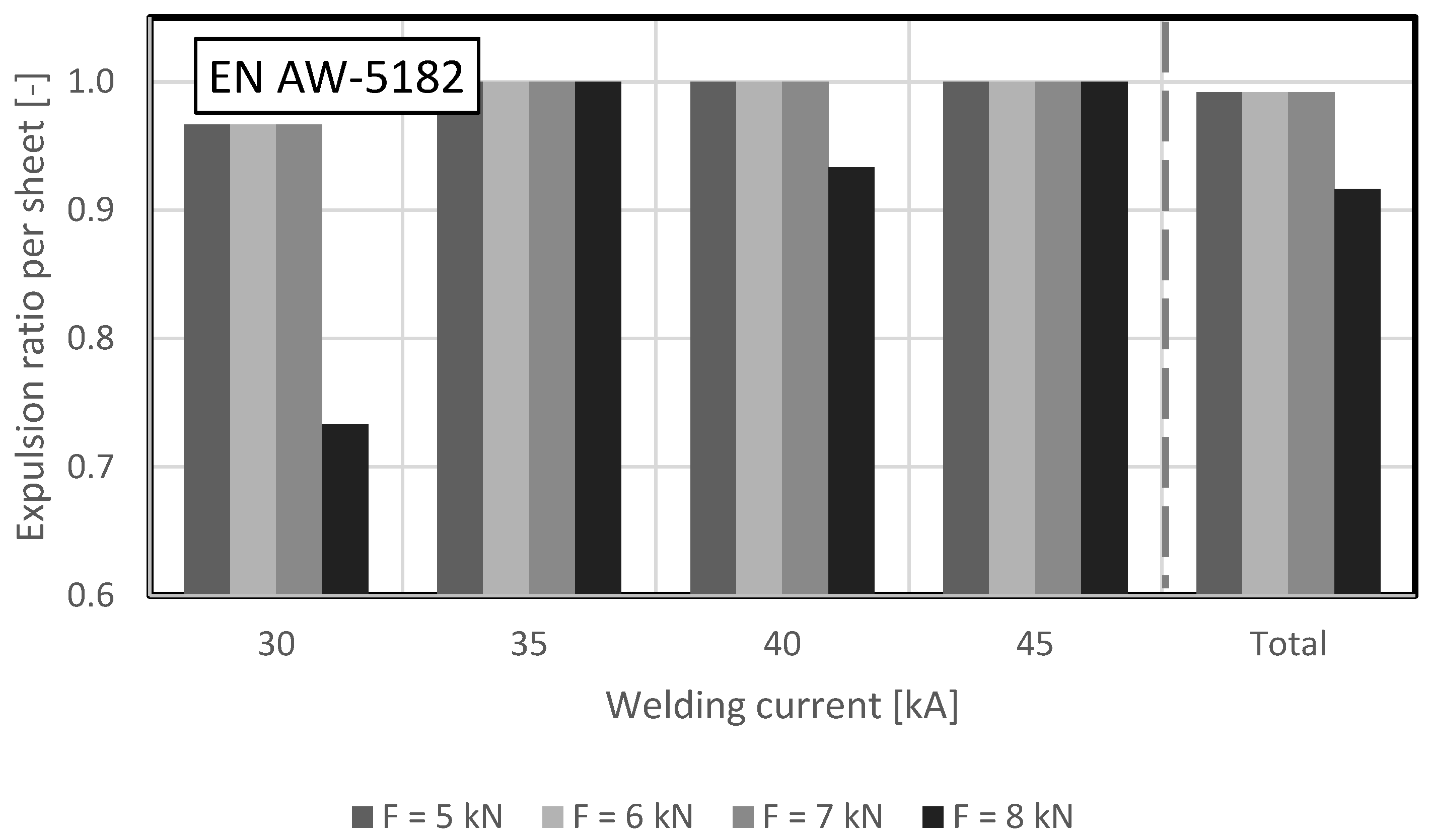 - EN AW-5182 has a very high probability of expulsion, while EN AW-6005 had no expulsions. The same welding profile was used for both alloys, suggesting that adjusting the welding profile for EN AW-5182 would be beneficial. In addition to adjusting the welding current, adjusting the electrode force profile would also be advantageous.