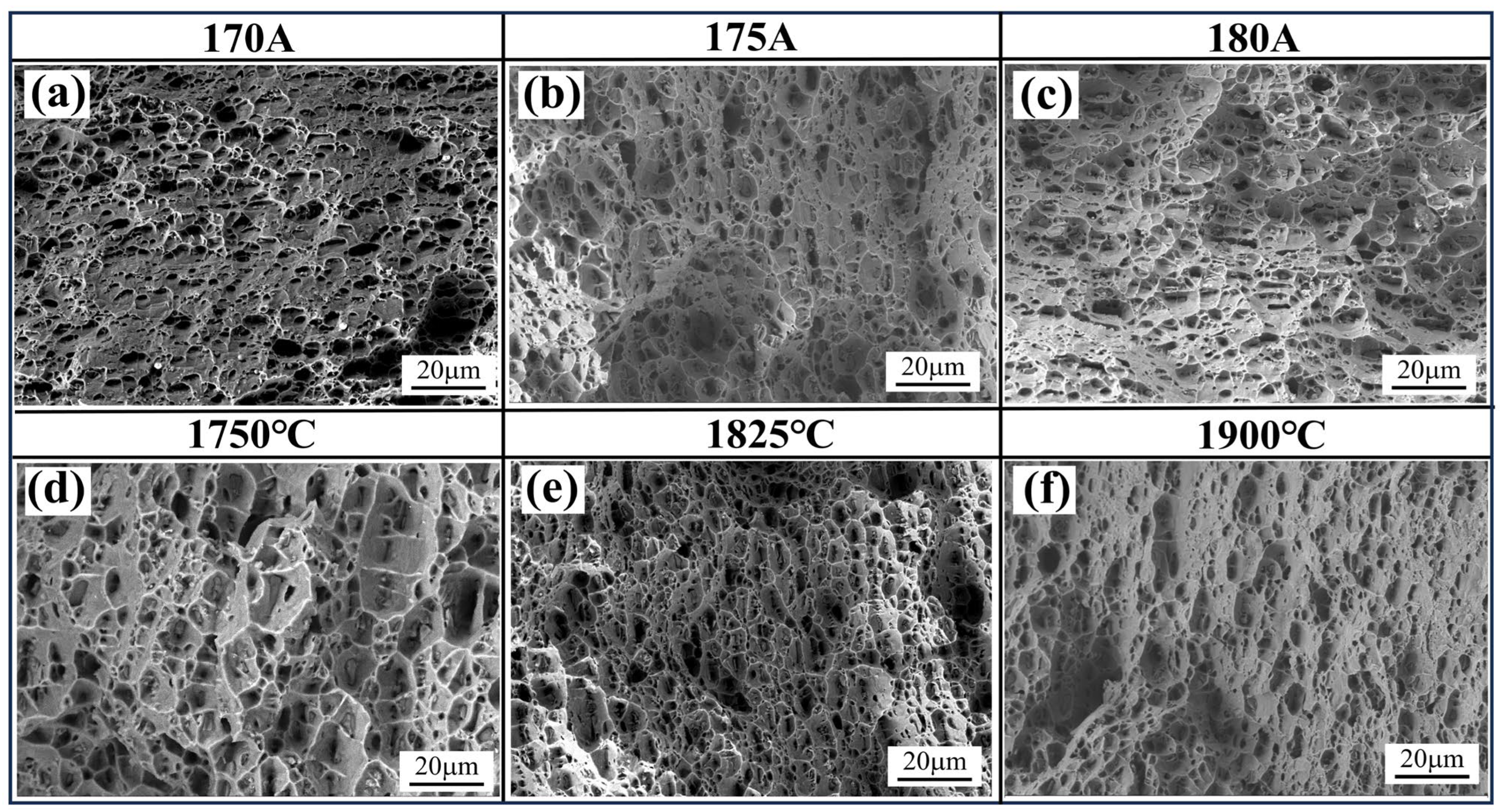 - Under controlled-temperature welding conditions, the closed-loop feedback control system for molten pool temperature effectively stabilized heat input, significantly improving the joint’s overall performance. The optimal comprehensive mechanical properties were achieved at 1825 °C. Under such conditions, reduced porosity, enhanced fracture morphology, and refined and homogenized microstructure were achieved. These structural optimizations lead to comprehensive improvements in mechanical properties: the weld zone exhibits higher average hardness with significantly reduced hardness variation across different positions; the tensile strength and elongation are also enhanced, demonstrating consistent mechanical properties along the welding direction.