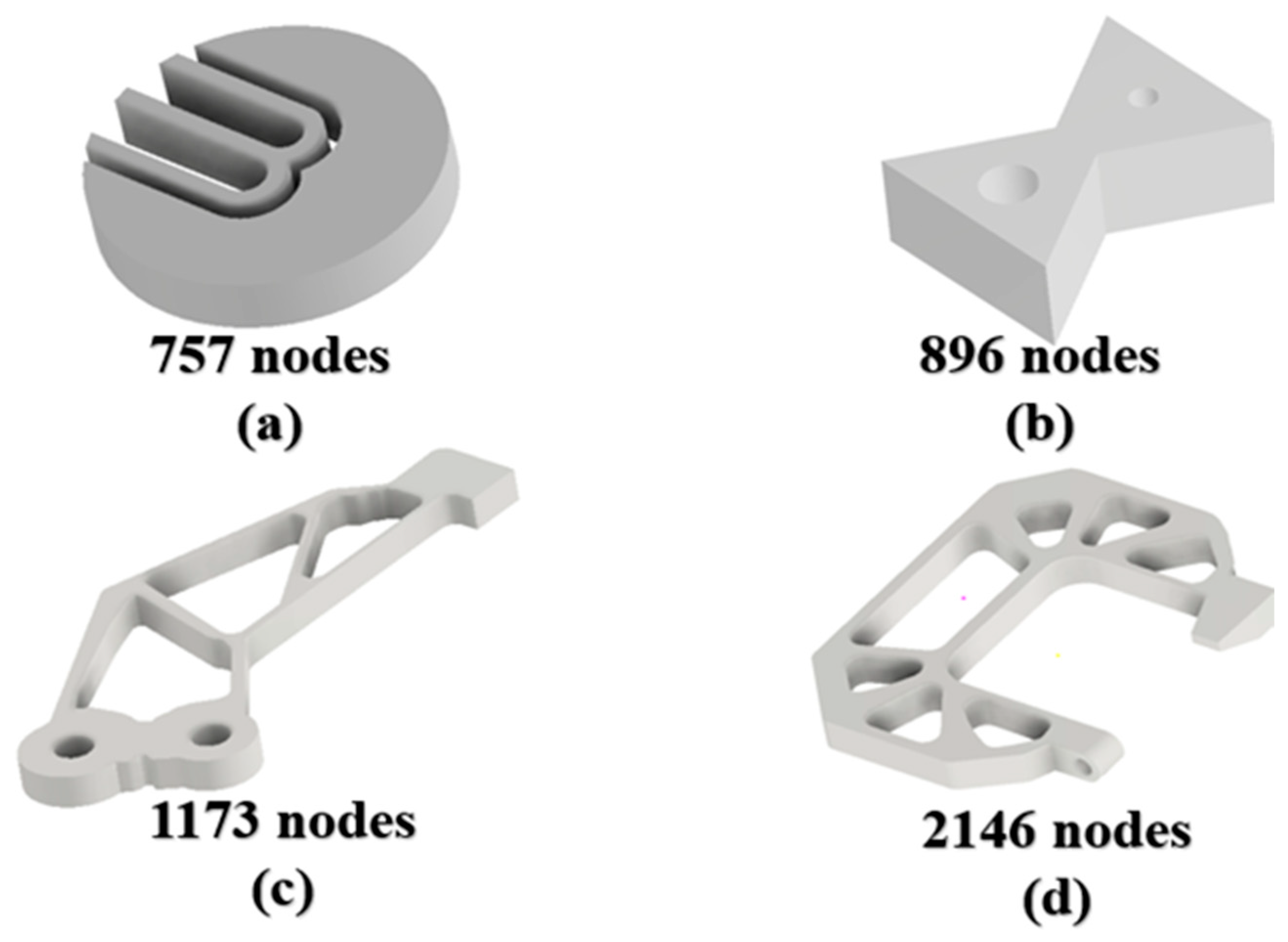 To achieve the objective stated in the previous section, four different parts and their respective numbers of nodes (using a node space of 4.0 mm) presented in