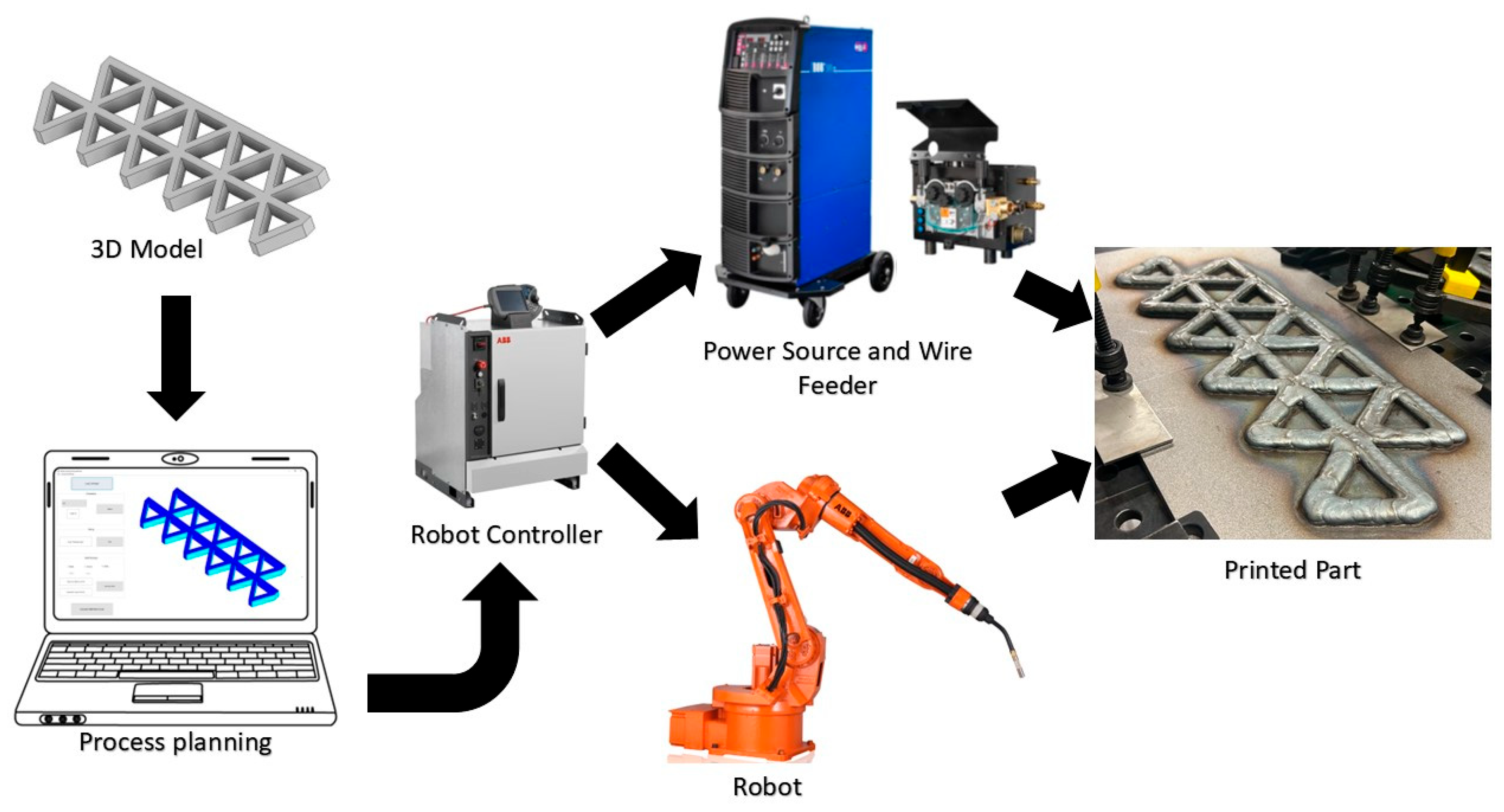 Finally, the proposed strategy is formulated for planar, layer-wise deposition and does not explicitly address true 3D freeform deposition or non-planar layers. This reflects current industrial practice in GMA-DED, where planar slicing remains predominant. Extension to non-planar deposition represents a promising but independent research direction.