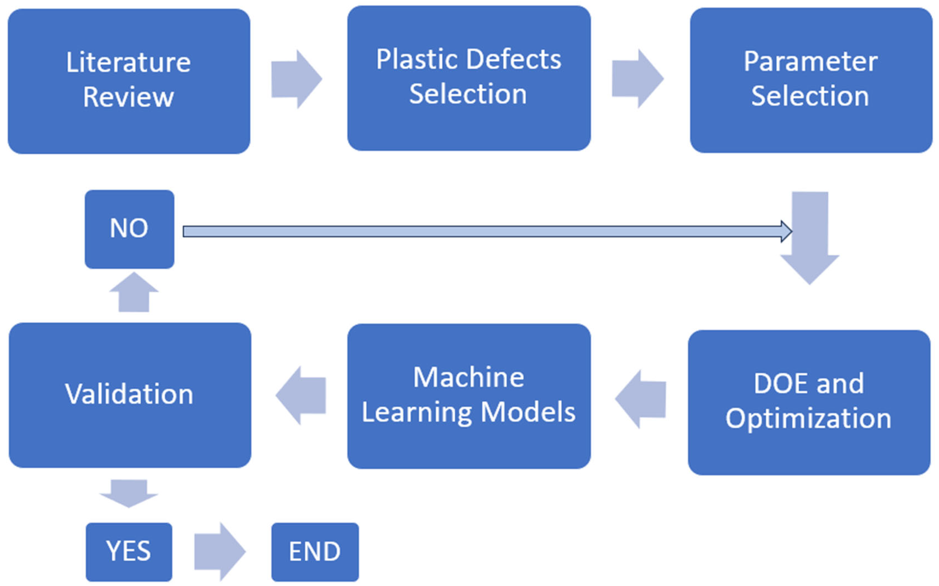 Despite the considerable progress reported in previous studies, several limitations remain within the current literature. Many investigations rely solely on statistical optimization techniques, which are effective for determining parameter combinations within specific experimental conditions but offer limited predictive capability beyond the tested scenarios. Furthermore, a large portion of existing work focuses on individual defects or performance indicators, such as warpage or shrinkage, rather than evaluating multiple quality characteristics simultaneously. Consequently, the interactions between processing parameters and different defect mechanisms are not always fully clarified, and the reliability of optimized process settings across multiple quality responses remains uncertain.
