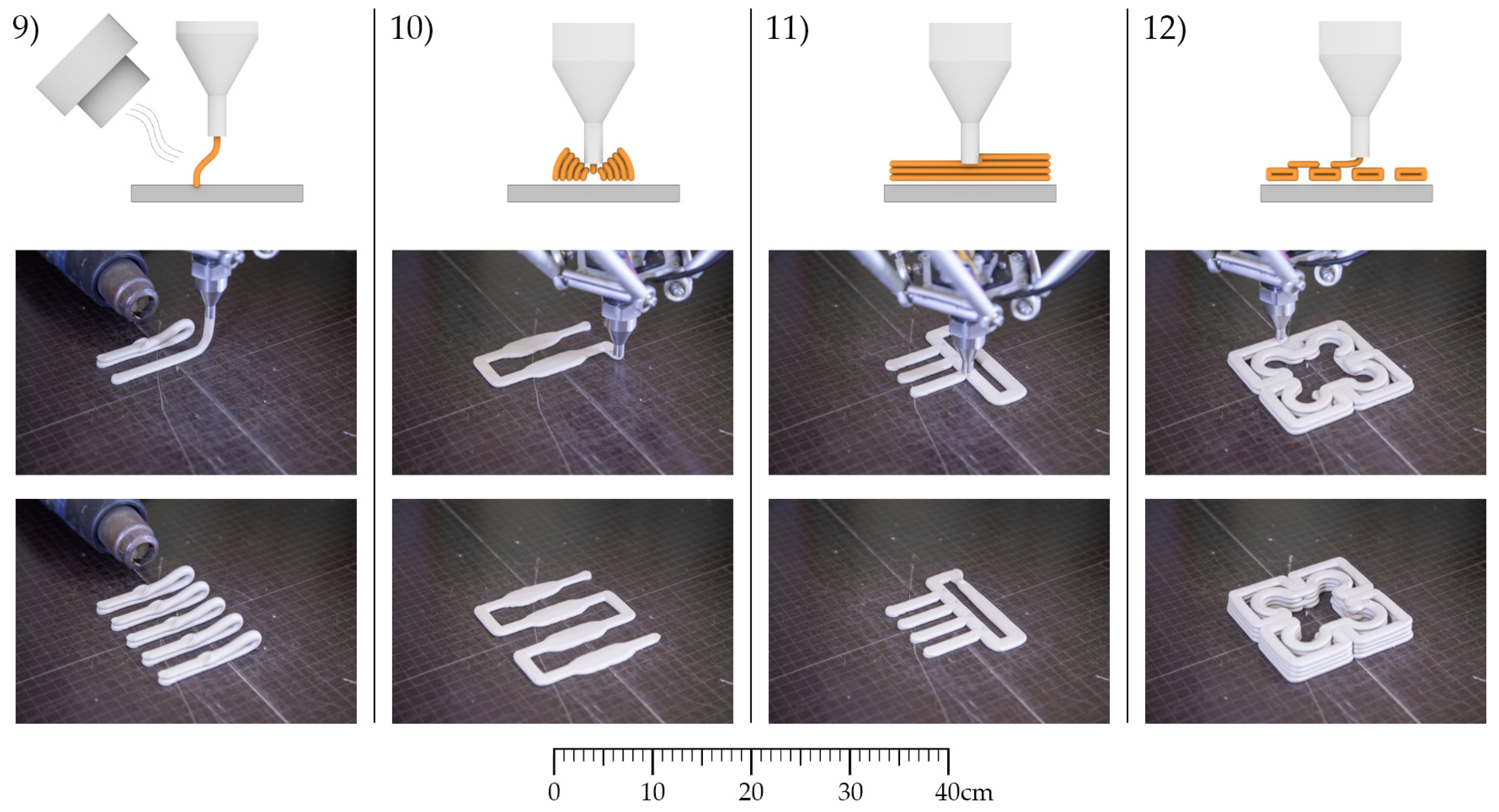 - Anton, A.; Bedarf, P.; Yoo, A.; Dillenburger, B.; Reiter, L.E.X.; Wangler, T.; Flatt, R.J. Concrete Choreography: Prefabrication of 3D-Printed Columns. In Fabricate 2020: Making Resilient Architecture; UCL Press: London, UK, 2020; pp. 286–293. [Google Scholar] [CrossRef]