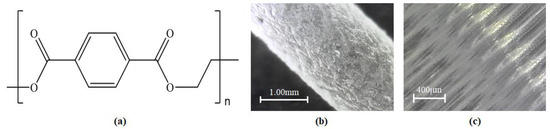 PET (a) chemical structure; (b) raw material; and (c) final processed material.
