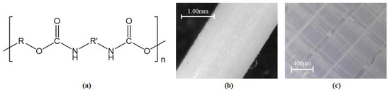TPU (a) chemical structure; (b) raw material; and (c) final processed material.