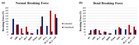 Polystyrene is an unchanging organic polymer and is a member of a family of lightweight structural materials important in the automotive, aerospace, and construction fields [73,74]. The phenyl groups (C6H5) contribute to the unique properties of these polymers. The large rings prevent the polymer chains from packing into crystalline structures [73]. Also, the rings constrain the rotation of the chains around the carbon–carbon bonds, impacting its rigidity. PC and HIPS appear to form local weak bonds easily without high heat or a long processing time [75]. For these reasons, it can be reasonably predicted that a HIPS and PC plate will adhere, but the bond will be fairly weak.