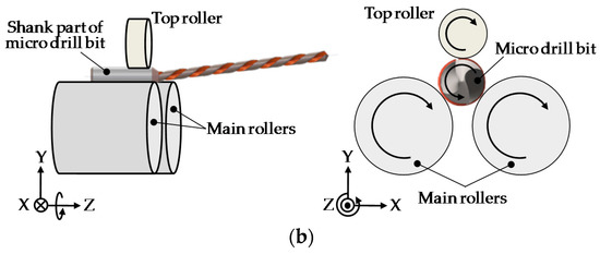 Previous research studies [15,16], rotated microdrill bits with ultra-precision rotary drive devices. A sub-micrometric measurement accuracy of the run-out has been achieved based on the rotation accuracy of the ultra-precision rotary drive devices, such as the ultra-precision spindle. On the other hand, measurement of the run-out with sub-micrometric accuracy in machine shops is required in industries, so that a straightening process can be carried out for quality control of the microdrill bit. However, it is difficult to apply the ultra-precision rotary drive devices for the run-out measurement with sub-micrometric accuracy in machine shops, because the ultra-precision spindle is sensitive to the large environmental disturbances of machine shops, such as vibrations. Moreover, the sophisticated installation of microdrill bits onto the ultra-precision spindle, in which the axis microdrill bit is required to be aligned coaxially with the axis of rotation of the spindle, is a time-consuming procedure that is not convenient for industrial measurement.