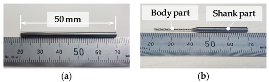 Photographs of (a) the pin gauge and (b) the microdrill bit.
