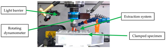 All experiments were performed on a conventional machining center. The forces and torque were determined using a rotating dynamometer. The FCA was calculated by determining the angle position of the main spindle to the fiber orientation by using a light barrier (cf. Figure 1). The specimens had the dimensions [mm] 200 × 200 × 5 for the bores with the diameter dtool = 10 mm, and [mm] 200 × 200 × 10 for the bores with the diameter dtool = 25.4 mm. The workpiece material is UD-CFPR (100% 0°), 60% fiber volume content (type of fibers: Dialead K63712) in epoxy resin. Each test in this paper was carried out three times, that is, replicated twice. In relation to the state of the art, the cutting speed for all tests was selected to be very low (vc = 0.63 m/min) in order to be able to apply the new strategies in Section 3.3, using the position control of the main spindle.