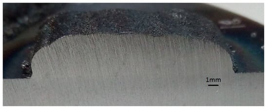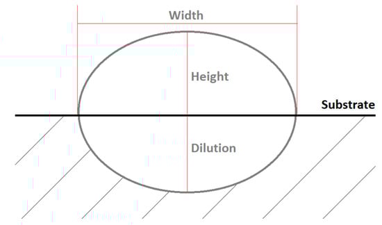 Lower widths and heights found in the rest of the tests can be explained from the process speed values chosen for the design of experiments, as they were apparently too high and therefore cooling time was left to be too short, meaning that was not possible to melt all the delivered powder [,]. Conclusions can be drawn also from the measured dilution percentages at different laser power value settings: when using 3000 W, dilution reached 20% and with 4000 W the dilution went up to more than 35%.