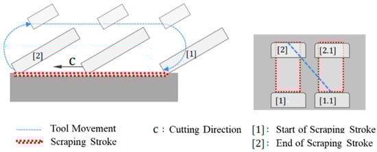 Cutting in hand scraping takes place in individual scraping strokes, which are placed next to each other by the worker during the backstroke, as depicted in Figure 1.