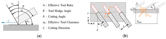 Similar to other cutting processes, hand scraping can be described by characteristic angles and forces. These are summarized in Figure 2, following the general nomenclature for cutting processes according to ISO 3002 and Schmid [9].