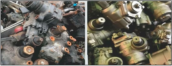 Within the literature, there are various definitions of remanufacturing, with [9] and [10] stressing that no universally accepted definition exists. Ijomah et al. [11] state that this ambiguity has presented a key challenge for practitioners and researchers. In addition to the confusion in terminology associated with remanufacturing, differences in definitions have been seen to exist in the expected quality and performance level of a remanufactured product in comparison to a newly remanufactured product [12]. Remanufacturing as [10] “the process of transforming durable products that are worn, defective, or discarded to a ‘like new or better’ condition through a production-bath process of disassembly, cleaning, refurbishment and replacement of parts, reassembly, and testing”. Ijomah (2009) [13] further argues that “the performance specification should be returned to the original level from the customers’ perspective and warranty will be given as equivalent to new products”. Chapman (2010) [9], on the other hand, defines remanufacturing as “an industrial process of returning a used product to at least its original performance, equivalent to or better than that of the newly manufactured product”. The American National Standards Institute (ANSI), in a more recent definition, argued that “remanufacturing is a comprehensive and rigorous industrial process by which a previously sold, leased, used, worn, or non-functional product or part is returned to a “like-new” or “better-than-new” condition, from both a quality and performance perspective, through a controlled, reproducible and sustainable process” [14]. Thus, remanufactured goods could be sold at a lower price, but potentially (or often) with a higher profit margin [15]. Following these definitions, it can be observed that the focus on remanufacturing has grown from the state of the product, to the condition of the remanufactured product, to the warranty and to the broader subject of sustainability. Figure 1 gives an example of a used and a remanufactured end product.