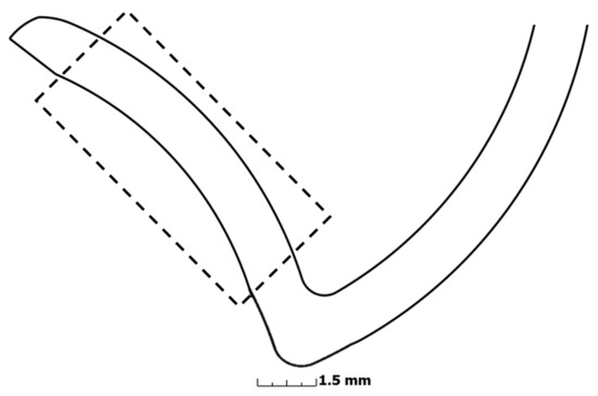 A micro-component with a V-shaped geometry is considered for this study since this type of geometrical feature is present in several medical applications, especially where hinging function is required. Presence of internal voids and pores is reported in many products with this type of geometry, which is the motivation behind this study. As shown in Figure 1 the part consists of two moving leg-like features joined at the cornerd to allow flexible movement of the legs. The component also includes several micro-scale features; however, the exact geometrical details and dimensions are omitted for confidentiality reasons. The aspect ratio in the perpendicular direction to cross section plane (shown in Figure 1) is of the 1/10th order of magnitude as compared to the lateral dimension.
