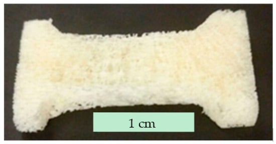 The porous structures made by LAPS are envisioned to be used as a replacement for conventionally fabricated scaffolds. So two different traditional methods were used to create reference samples. As the first reference, three demineralized cancellous bone strips with around 6 mm in thickness were machined into tensile bar shape as shown in Figure 3.