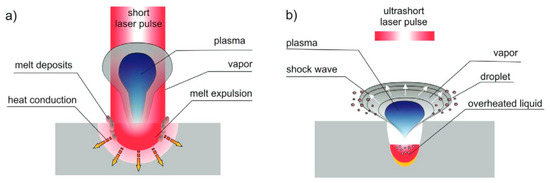 23]. Although ultrashort laser ablation is extremely precise, the ablation rate is significantly lower than with laser ablation in a nanosecond regime, which allows the highest ablation efficiency [