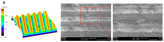 Figure 2b) was on average 150 µm with a depth of 500 µm. The distance between the grooves, grid, and the holes was kept at 600 µm.