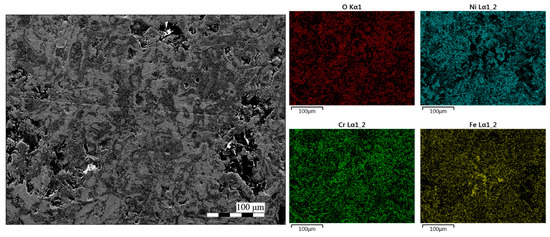 This suggests that NiO integrates large quantities of Fe and Cr at high temperatures within the range of parameters in the flame spray process. The balance of elemental components before flame spray is shown in Table 1 [17].