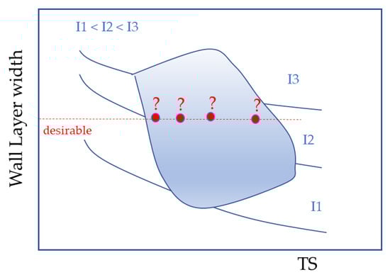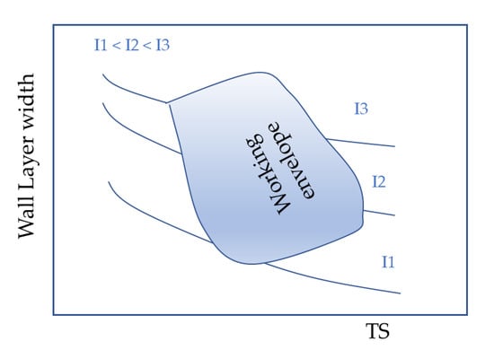 Therefore, more experiments should be performed to get the realistic values of LW and, hence, to get the realistic operational map and respective working envelope. This can be accomplished by choosing a systematic design for the experiments over the Im and TSset operational range presented in the second approximate operational map (Figure 11) and perform the experiments to find out the desired LW of the walls built.