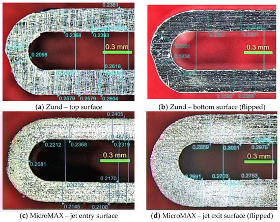 | MicroMAX [5/10] 1 | Al/0.64 | ϕ0.3 mm/30 μm | ±12 μm | ~ 10 | 1.01 | N/A | 2.2 2 | No | Presence of slight edge rounding and taper—materials were too thin for TAJ to remove edge taper effectively |
