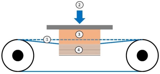 All experiments were conducted on a multi-wire saw type DS265 from Meyer and Burger (Thun, Switzerland). A schematic drawing of a multi-wire slurry saw from Meyer and Burger (Thun, Switzerland) is shown in Figure 3. The used type of multi-wire saw consists of two wire guide rollers and a web of wires spanned in between. The horizontal distance of the wire guide rollers is 660 mm (between the axes). The wire tension holds the wire in the wire guide grooves and dampens the vibration of the wire during the sawing process. The distance between the wires in the wire guide grooves defines the thickness of the wafers. The workpiece is glued to a beam, which is attached to the feed table. The rotation of the wire guide rollers accelerates the wire as the feed table presses the workpiece onto the wire web. From the slurry nozzles, a mixture of polyethylene glycol and abrasive particles is applied on the wire field. About 50% by mass of abrasive particles are contained in this mixture. The mixture adheres to the wires, is carried along by the wire speed and is fed into the workpiece. The forced movement of the abrasive particles in the sawing channel causes chipping of the material. The sawing channel, which is constantly deepened by the material removal, leads to separate wafers at the end of a sawing process [9].