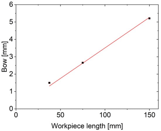 Bow measurements depending on the variation of the workpiece length (slope = 0.035 (±0.001); COD (r2): 0.99).