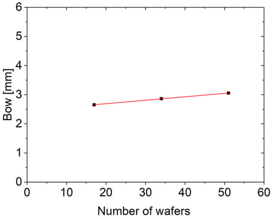 Bow measurements in dependence of the variation of the number of wafers (, COD (coefficient of determination) (r2): 0.99).
