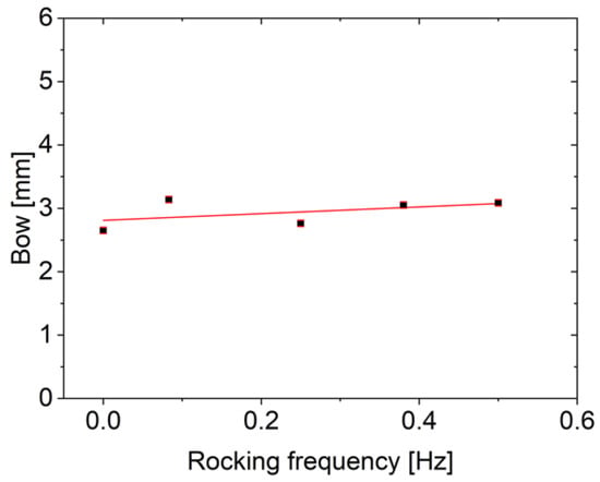 Bow measurements depending on the variation of the rocking frequency (; COD (r2): 0.25).