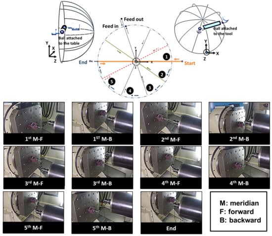 - Lee, K.-I.; Yang, S.-H. Accuracy evaluation of machine tools by modeling spherical deviation based on double ball-bar measurements. Int. J. Mach. Tools Manuf. 2013, 75, 46–54. [Google Scholar] [CrossRef]