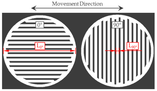 3.1. Influence of Grinding Direction of the Metal Body and the Infill Orientation