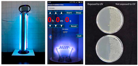 - Bentancor, M.; Vidal, S. Programmable and low-cost ultraviolet room disinfection device. HardwareX 2018, 4, e00046. [Google Scholar] [CrossRef]