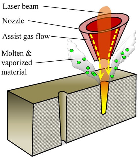 - Kim, M.; Majumdar, P. Computational model for high-energy laser-cutting process. Numer. Heat Transf. Part Appl. 1995, 27, 717–733. [Google Scholar] [CrossRef]