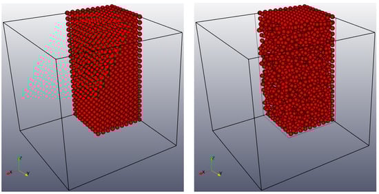 Uniform vs. random configuration of particles. Only a quarter of the cubic domain is clipped and shown for better visibility.