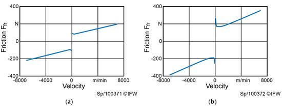 Hence, five parameters have to be adjusted. According to Ruderman [18], the Stribeck shape factor can be assumed as . Breakaway friction , Coulomb friction , Stribeck velocity threshold , and viscous friction coefficient are subject to an optimization. To this end, axis slide movements are performed, covering a range of constant velocities. Since and have been determined before, both are subtracted from the motor force, as expressed in Equation (5).