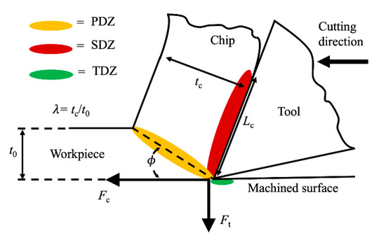 Schematic of the primary deformation zone (PDZ), the secondary deformation zone (SDZ) and the tertiary deformation zone (TDZ).