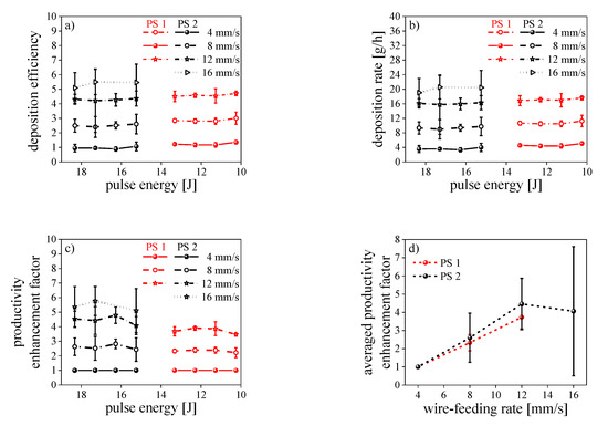- The productivity could be increased up to a factor of about five compared to the initial wire-feeding rate of 4 mm/s, i.e., from initially about 4 to about 20 g/h.