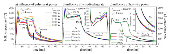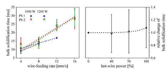 - The hot-wire technique showed no significant influence on the melting deposition rate and the weld seam geometry as well as the hot-crack formation, i.e., the active intervention in the heat management.